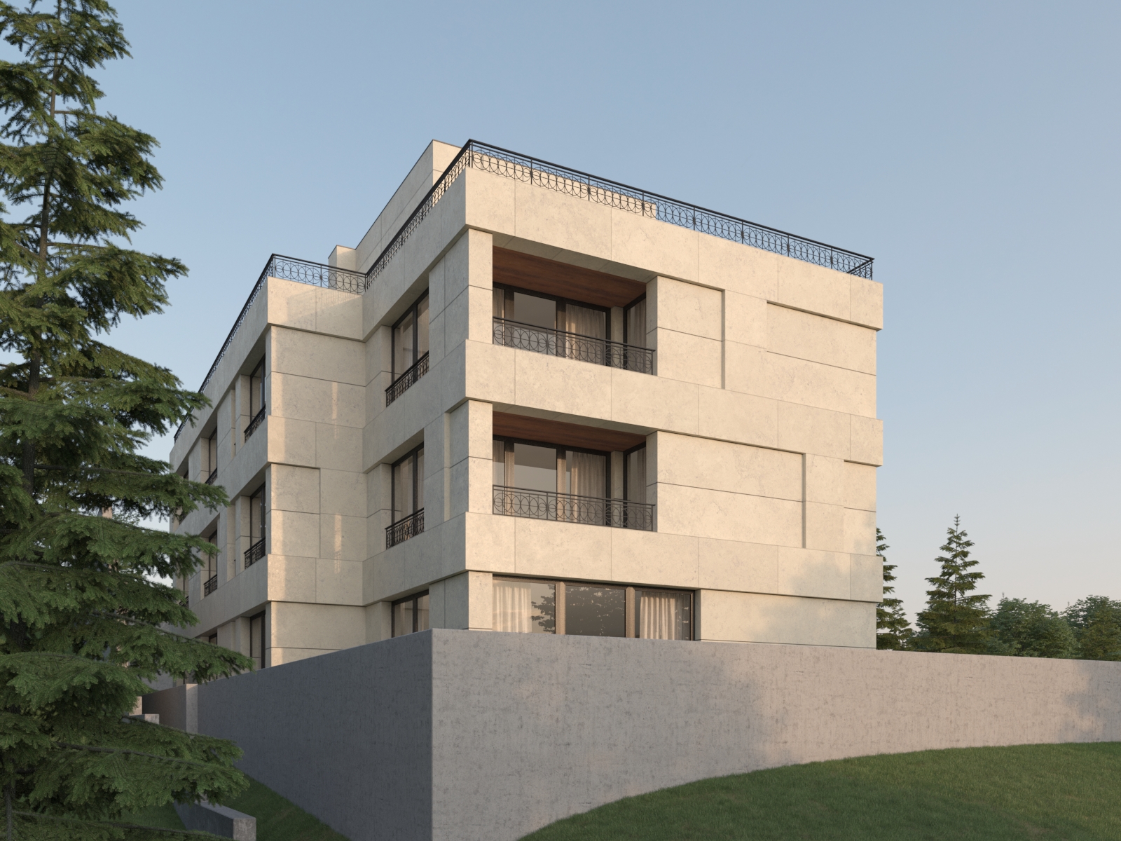 01 Описание Стилна жилищнa сградa с подземни гаражи в гр. София, кв. Бояна, с площ от 982 м2, която разполага със седем апартамента с перфектно разпределение.