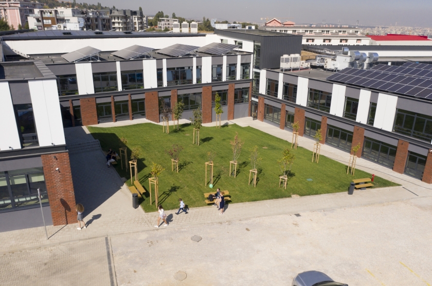 Кампусът е оборудван и с иновативни системи за пречистване на въздуха и водата, които го превръщат в наистина зелено парк училище, което гарантира на учениците по-здравословен живот.