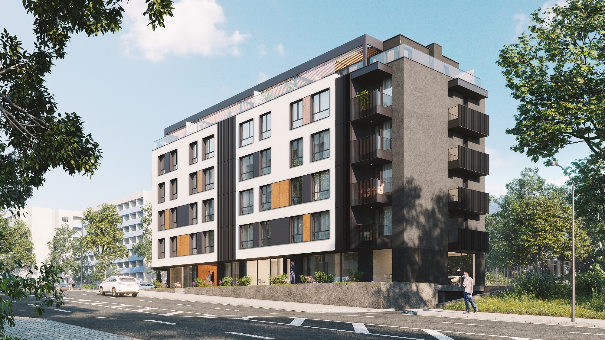 Модерната 5 - етажна жилищна сграда се намира в ж.к. Люлин, на комуникативно място и разполага с двустайни, тристайни и четиристайни апартаменти, 24 броя паркоместа, гараж за велосипеди и мазета. На приземния етаж са предвидени шоурум със смесено предназначение и една дрогерия със самостоятелни входове.